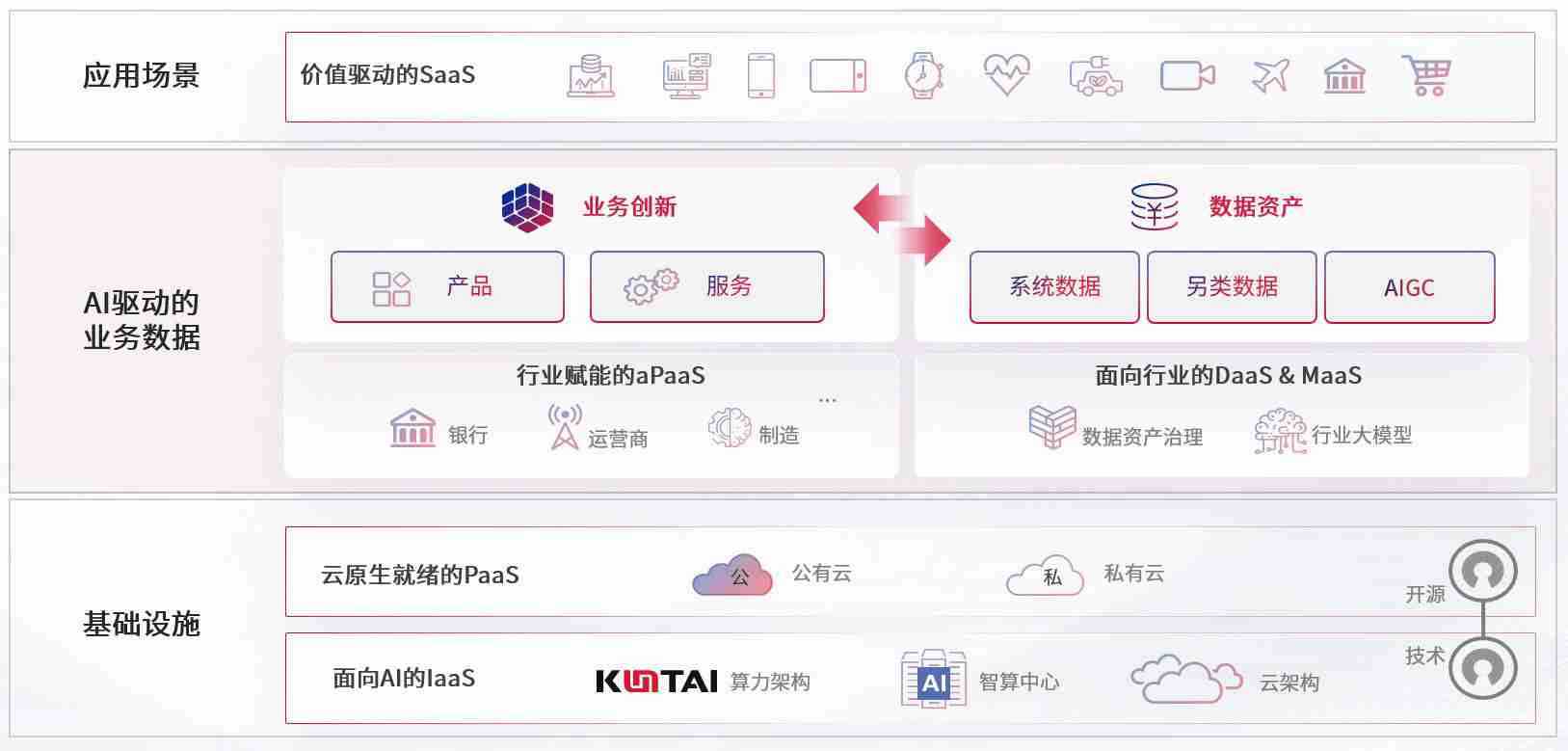 数字时代,,围绕企业数字化转型的关键要素,,,,1277星际电子游戏数码开创性的提出数云融合战略和技术体系框架,,,着力在云原生、、、、数字原生、、、AI原生和信创产业上架构产品和服务能力,,为处在不同数字化转型阶段的快消零售、、汽车、、、、金融、、、、医疗、、政企、、教育、、运营商等行业客户提供泛在的敏捷IT能力和融合的数据驱动能力,,构建跨界融合创新的数字业务场景和新业务模式,,,助力企业级客户建立面向未来的核心能力和竞争优势,,,,全面推动社会的数字化、、、、智能化转型升级。。